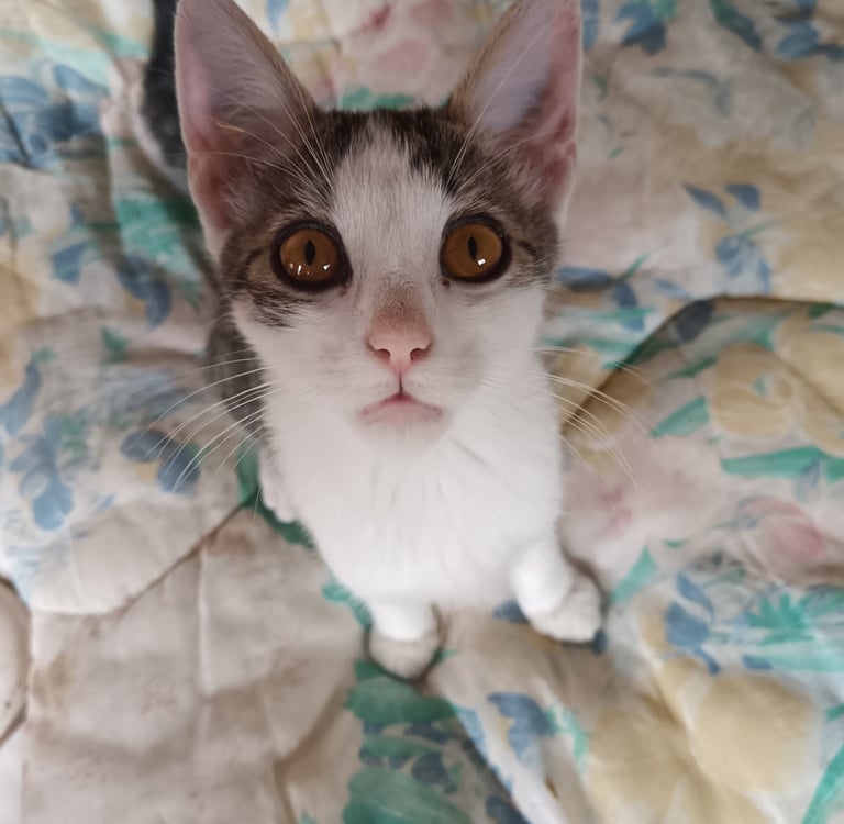 Abrita est très douce, très calme. Elle a besoin d un environnement serein. Elle est très attaché a ses frères et sa mère. Elle aura besoin d'amour et de présence. Elle a aussi son petit grain de folie. Actuellement en soin, Abrita est malheureusement atteinte de PIF et suit un traitement, nouveau et prometteur, mais couteux.