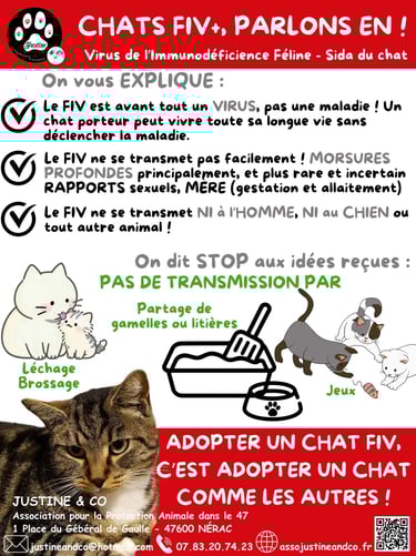 Contactez-nous pour en savoir plus sur l’adoption d’un chat FIV. Adoption au tarif SOS.