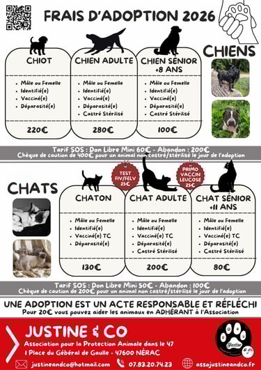A compter du 01/04/2026 les frais d’adoption évoluent chez Justine & Co.