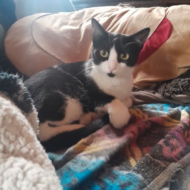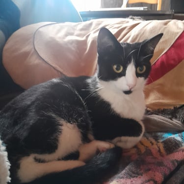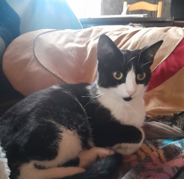Son humain décédé, Aglaé s'est retrouvée seule et à la rue. Identifiée et stérilisée par l'association, elle a été récupérée avec ses petits Alpha et Allegro. Maman formidable, très douce, pas sauvage mais juste timide. Aglaé aime beaucoup les caresses.