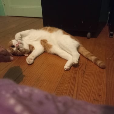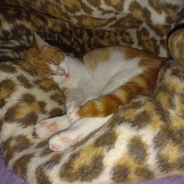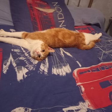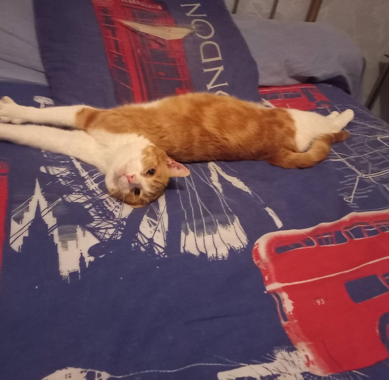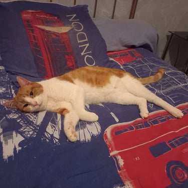 Timide, il lui faudra une période d'adaptation. Il aime la présence humaine et accepte les caresses. Il décidera, une fois en confiance de faire la sieste avec vous.