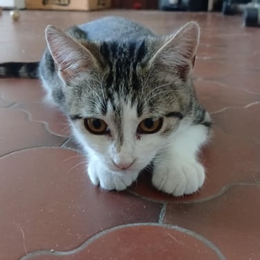 Malgré ses traitements contre la PIF et son coryza, il reste doux et câlin.