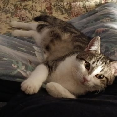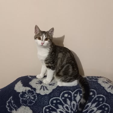 Ange est vraiment un amour avec un côté petit démon quand il se met à jouer. Il aime son panier dodo tout doux pour de longues siestes, regarder par la fenêtre du haut de son arbre à chat et se lover contre son gardien pour une nuit bien au chaud.