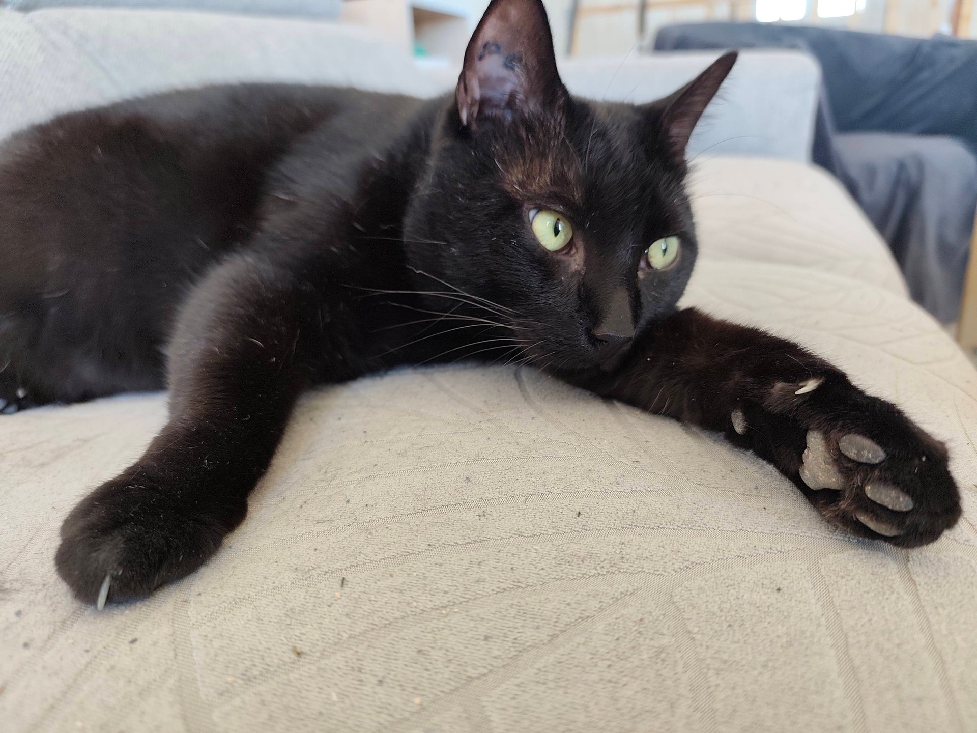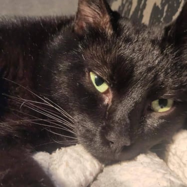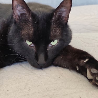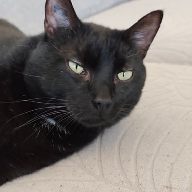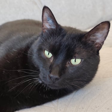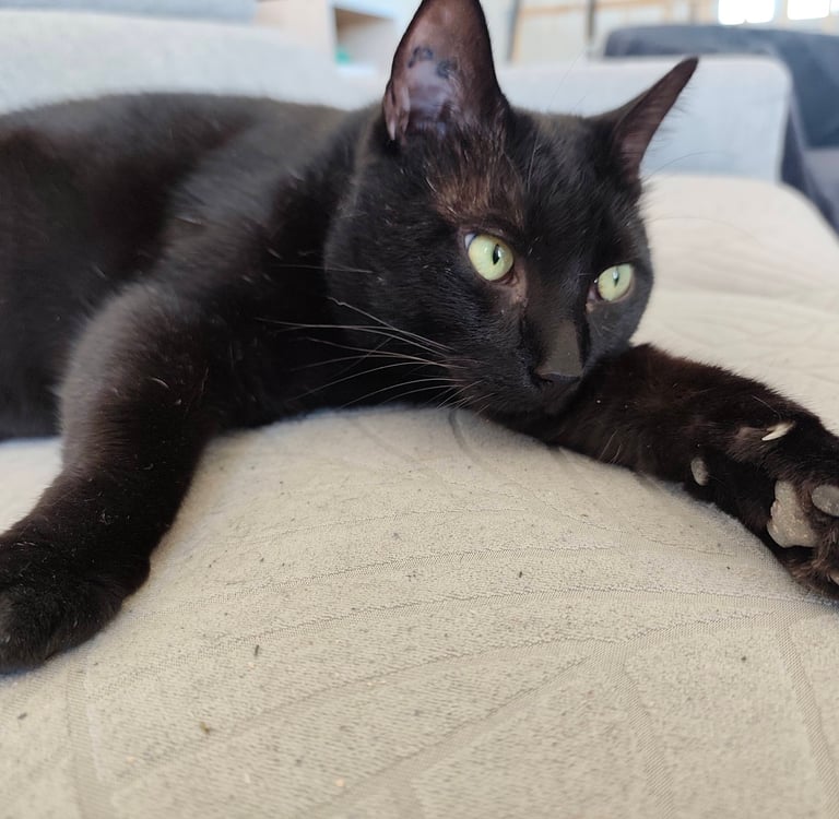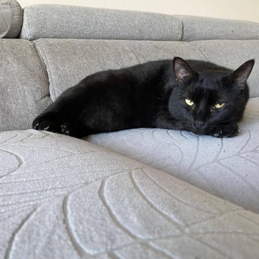 ANOIREAU est un chat calme, qui aime les câlins par dessus tout. Son lieu de prédilection, le canapé, où il adore