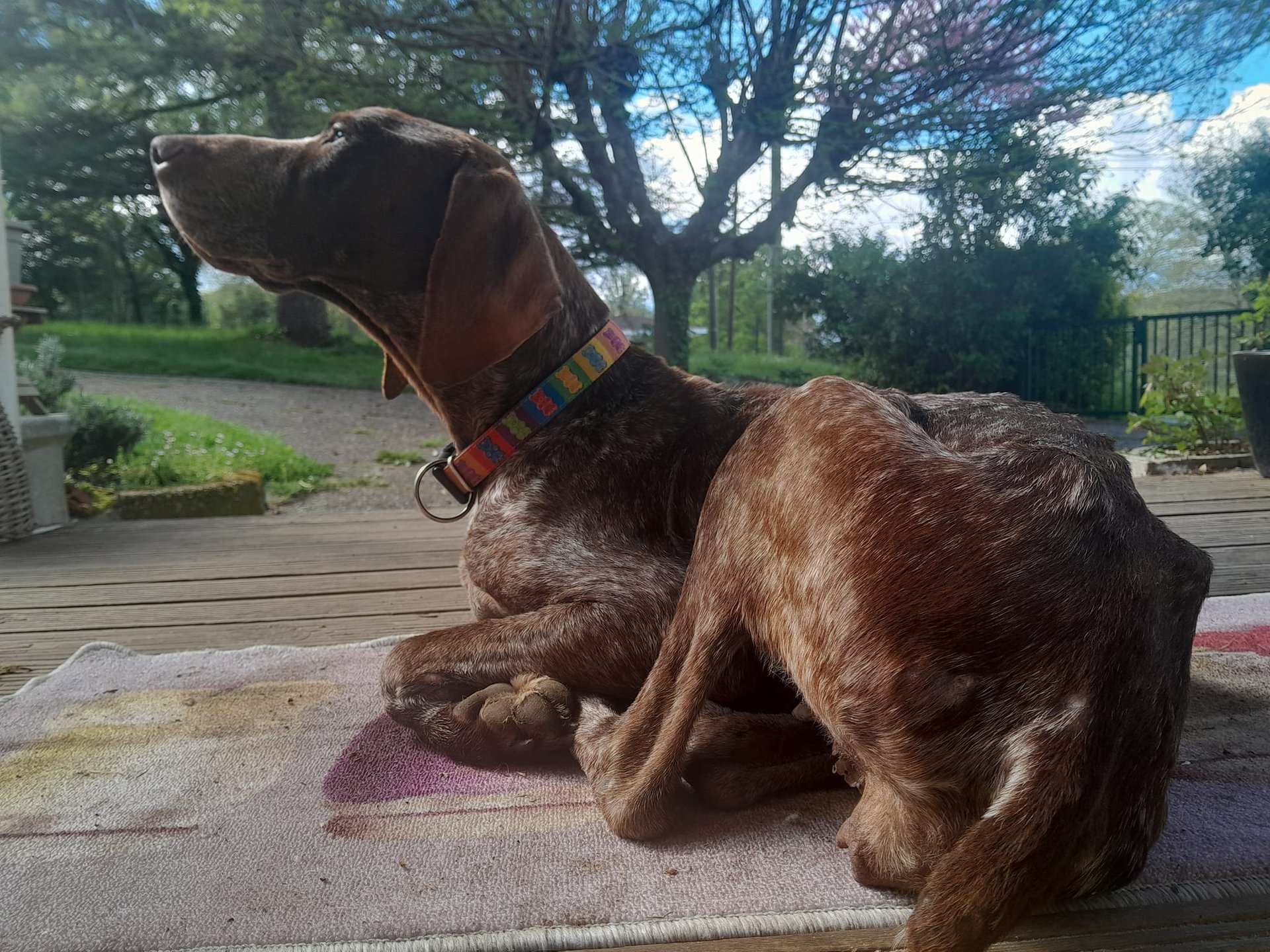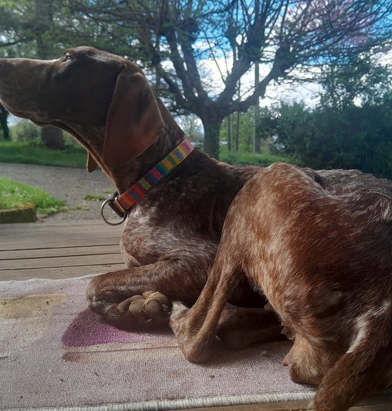 Trouvée dans un état de maigreur extrême et souffrant d'un infection vaginale et utérine, Aphrodite a été soignée et placée en famille d'accueil longue durée.
