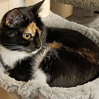 Cette jolie chatte sociable, aura besoin d'amour, d'attention et de sécurité.