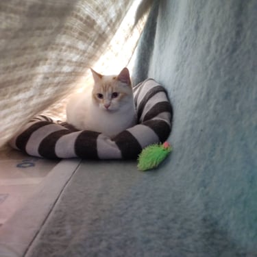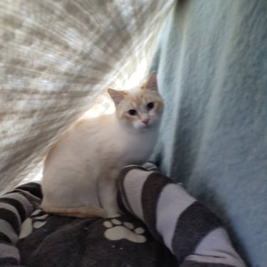 Récemment pris en charge, Aragon se montre encore craintif mais curieux de découvrir les humains comme en témoignent ses ronronnements et ses roulades. Il s'entend bien avec ses congénères, mais craint encore un peu les chiens.