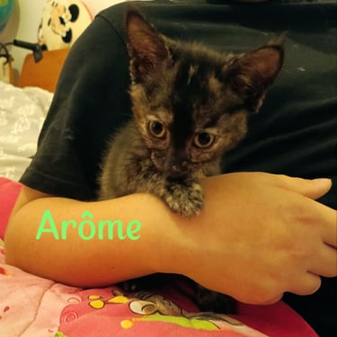 Arôme a été placée en famille d'accueil avec toutes ses soeurs. En attendant d'en savoir plus sur son petit caractère, n'hésitez pas à prendre contact avec nous, si vous craquez déjà pour elle.