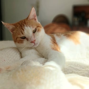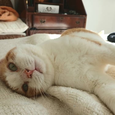 Ascott est très câlin et aime s'installer au chaud sur une couverture ou lové sur vos genoux. C'est un vrai pot de colle.