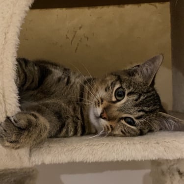 Astro est encore en phase d'apprentissage de la vie de famille. Il est encore un peu peureux pour l’instant. Il est sur la réserve mais pas du tout agressif. Il est joueur avec sa sœur.