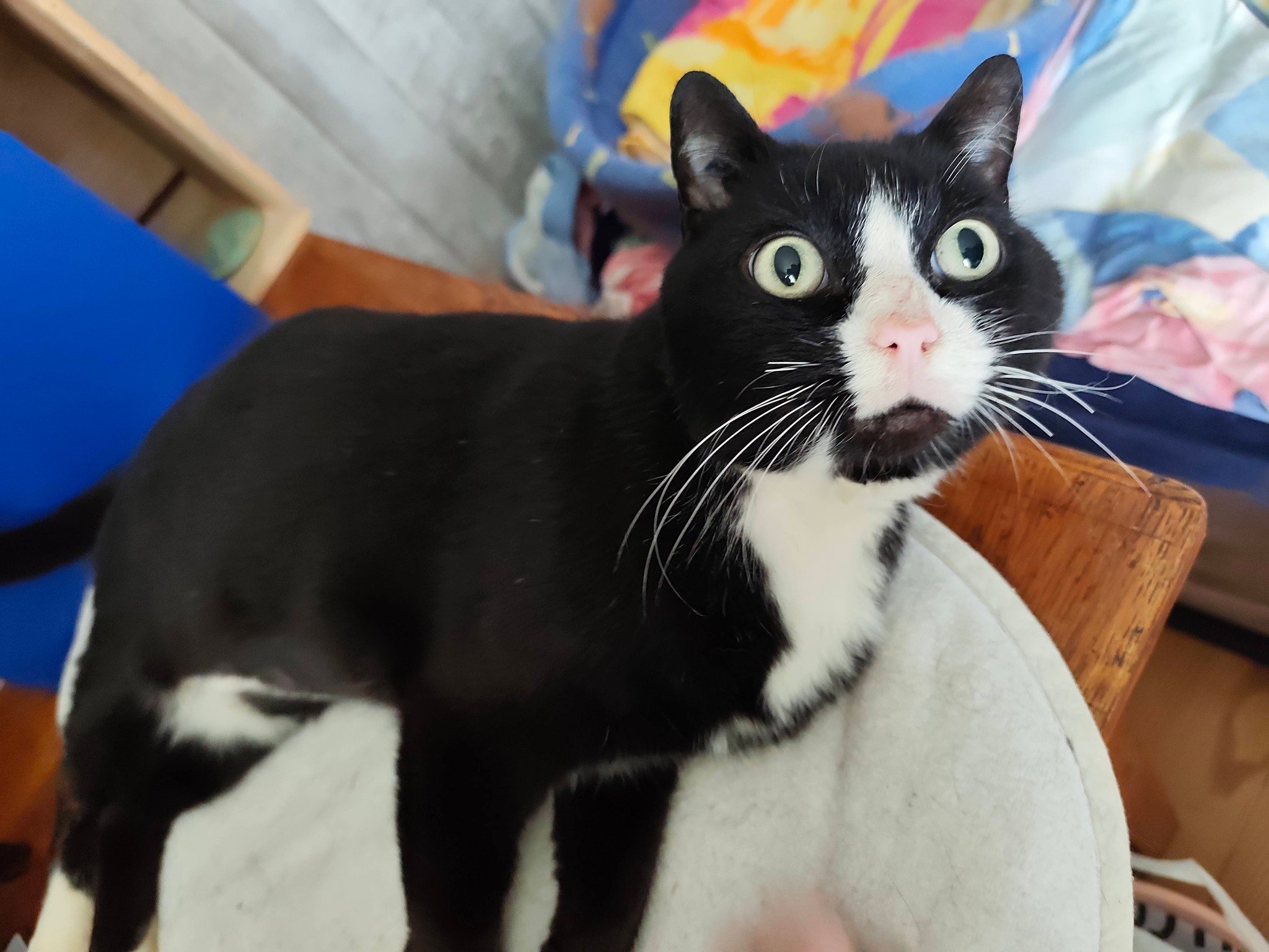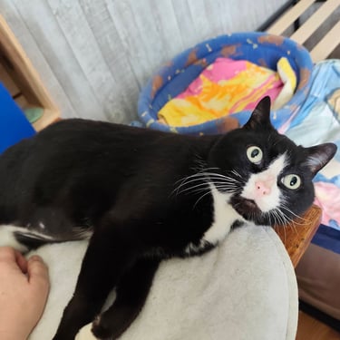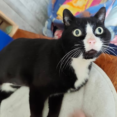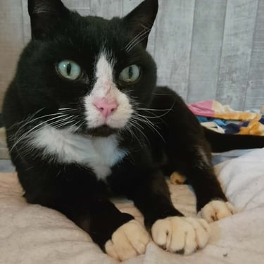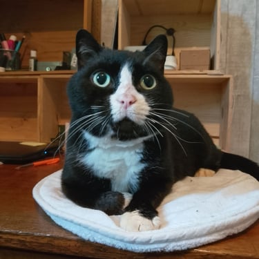 Babouche nous fait penser à un chat de dessin animé : avec ses yeux, tout ronds, et particulièrement expressifs, Babouche sait se faire comprendre. D'un naturel calme et réservé, il apprécie fortement les caresses. Une personne d'un certain âge avec un rythme de vie pausé lui conviendrait bien.