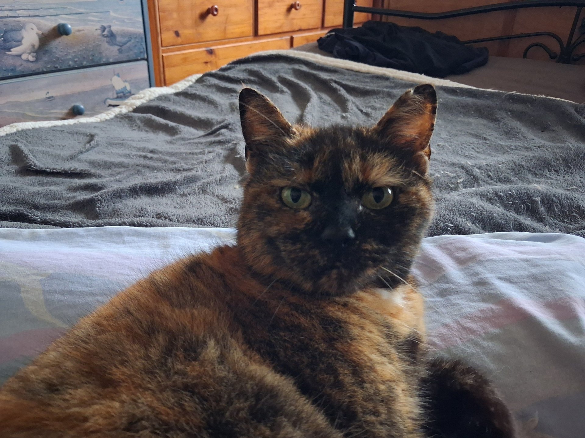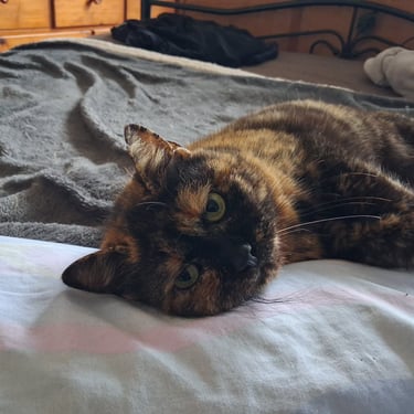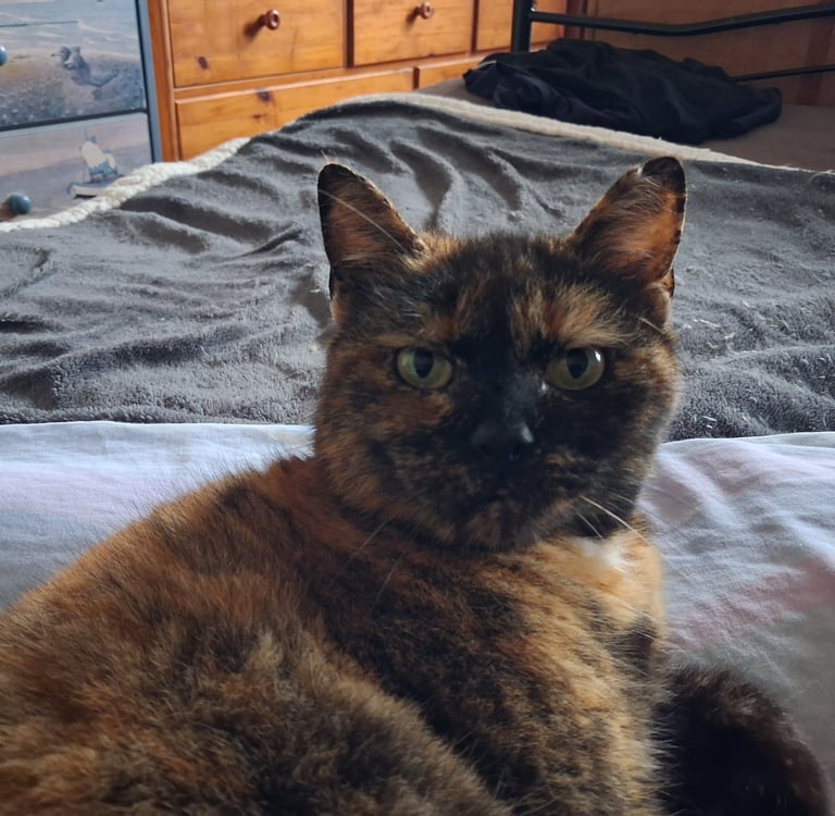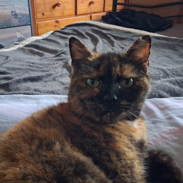Bahia est arrivée dans l'association, suite au décès de son humain. Bahia aime beaucoup le contact humain, mais quand c'est elle qui le décide. Elle adore se lover contre sa famille d'accueil. Elle exprime son contentement par un ronron bien sonore! Bahia est calme, et gourmande.