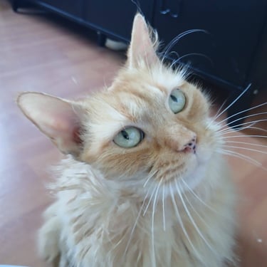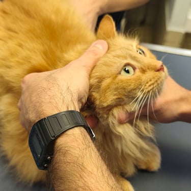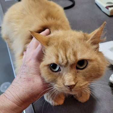 Bonnie vivait dans la rue où elle était nourrie par des habitants qui nous l'ont signalée lorsqu'ils ont constaté des saignements de son oreille droite. Gale et otite ont rapidement été traités, en outre, une masse suspecte (polype) a nécessité une intervention chirurgicale.