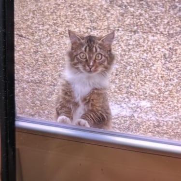 Brisette est une jeune chatte, née d'une chatte libre, dans le jardin d'un monsieur. Il s'est occupé de la nourrir et de la sociabiliser.