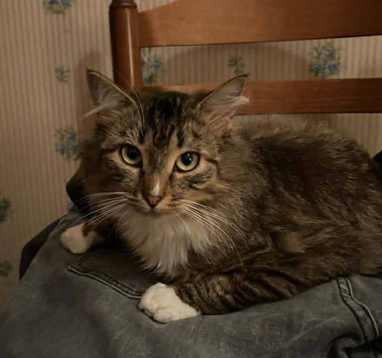 Brisette a ses moments de folie où elle joue et court partout ainsi que des moments calmes où elle apprécie les câlins. Elle aime dormir dans la chambre en compagnie de ce monsieur.