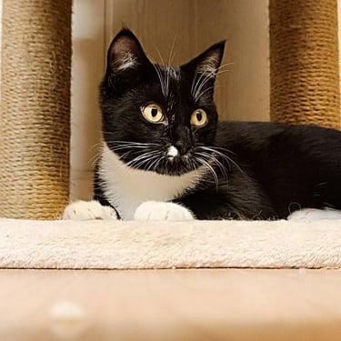 Brownie aime la chaleur, qu'on se le dise. Un panier bien enveloppant, une niche d'arbre à chat ou encore simplement sous la couette (il finira sous la votre pendant votre nuit à n'en pas douter!).