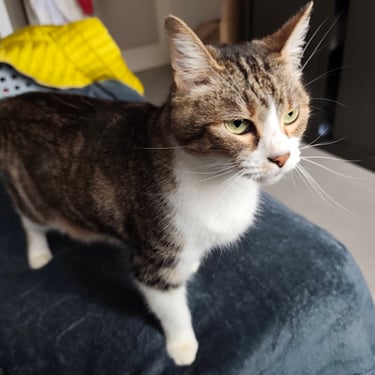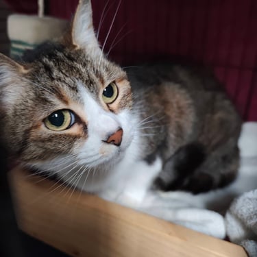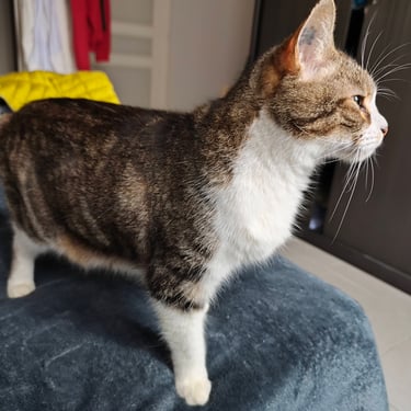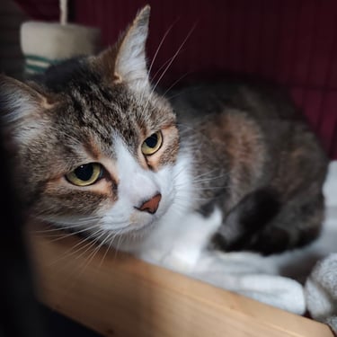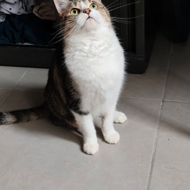 Elle est gourmande de pâtée. Elle vient chercher les caresses. Elle est très calme et prend peu de place. Un coin tranquille pour faire ses siestes, elle ne demande rien de plus.