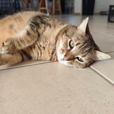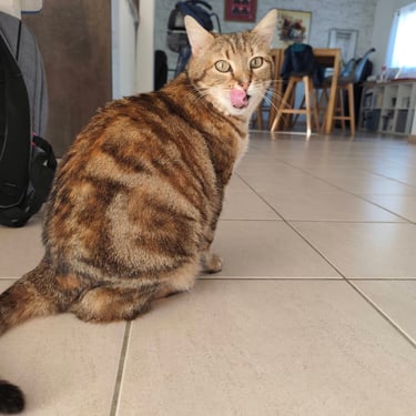 gardiens, qui venaient régulièrement dans leur maison de campagne, juste pour la nourrir. Nous ne savons rien d'elle, ni d'où elle vient... A part qu'elle est sociable, câline, qu'elle aime beaucoup être portée, qu'elle est calme.