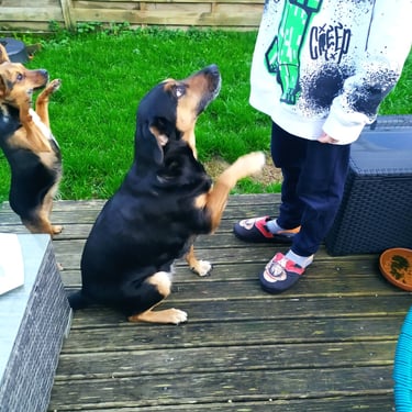 C'est aussi une chienne, calme, obéissante qui ne fait pas de bêtise.
