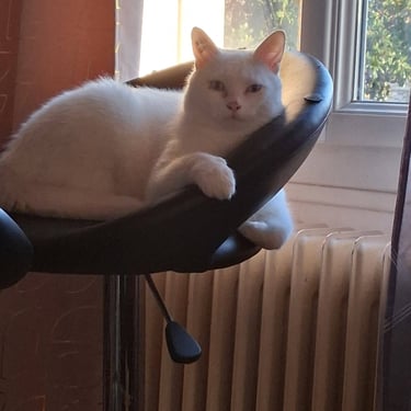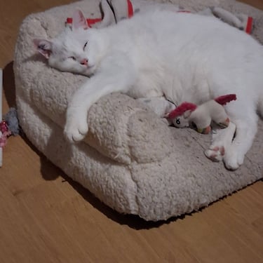 Ce chat, c'est une boule d'amour. Il vit désormais sa vie, entourée de sa Famille d'accueil, qui lui prodigue soin et amour, dont il a tant besoin.