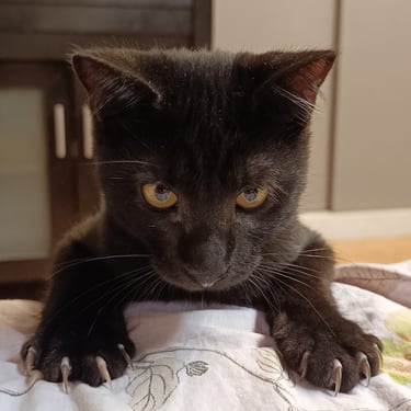 Loin d'être le petit chat sauvage que l'on pouvait s'imaginer, Nutella est un chat très dynamique. Il a besoin de faire beaucoup d'exercice, par le jeu pour le moment. Il lui faudra un extérieur, car il pourrait se révéler être un très bon chasseur. Nutella est affectueux, se laisse porter, cherche le contact, curieux. Il ronronne facilement. Il est propre.