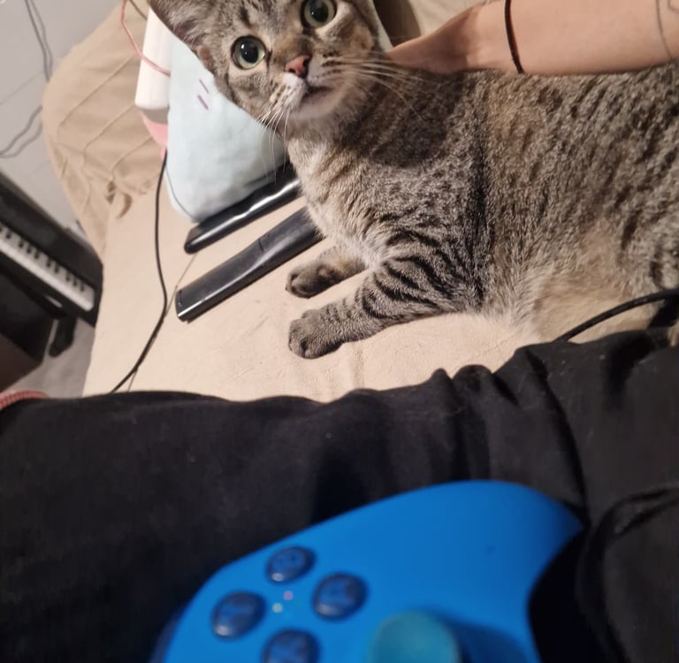C'est une chatte calme, timide, douce, propre.