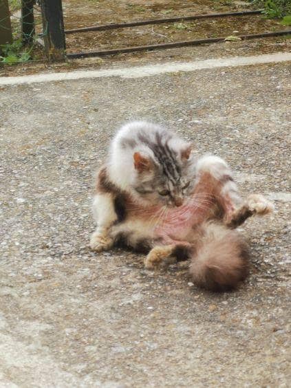 Son état de santé nécessite des soins urgents et révèle des problèmes de peau sévères. Le pemphigus foliacé est une maladie auto-immune qui se traite mais ne se guérit pas, perpétuellement sous-jacent. Ses lésions sont surinfectées car négligées depuis longtemps. Un premier traitement est mis en place mais reste sans effet. Il nous a fallu voir un spécialiste en dermatologie pour trouver une méthode efficiente.