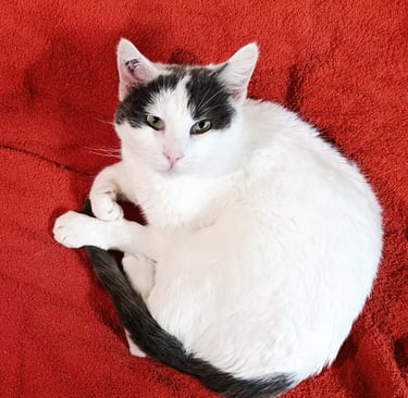 Zimba est de celle qui vous accueillera à la porte quand vous rentrerez le soir. Elle viendra également vous dire bonjour au réveil le matin. Zimba est câline et passe son temps à quémander des caresses, notamment avec ses coups de tête.