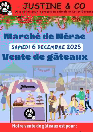 En venant acheter les bons gâteaux concoctés par nos bénévoles, au marché de Nérac, le samedi 6 décembre ! La vente est bien sûre organisée au profit de nos protégés.